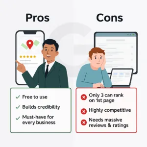 Annual Costs – Free Benefits – Credibility for every business Disadvantage – Only 3 businesses come on the first page, heavily reliance on reviews Smart Suburbs – Smart Suburbs = Guaranteed 1st Page Visibility